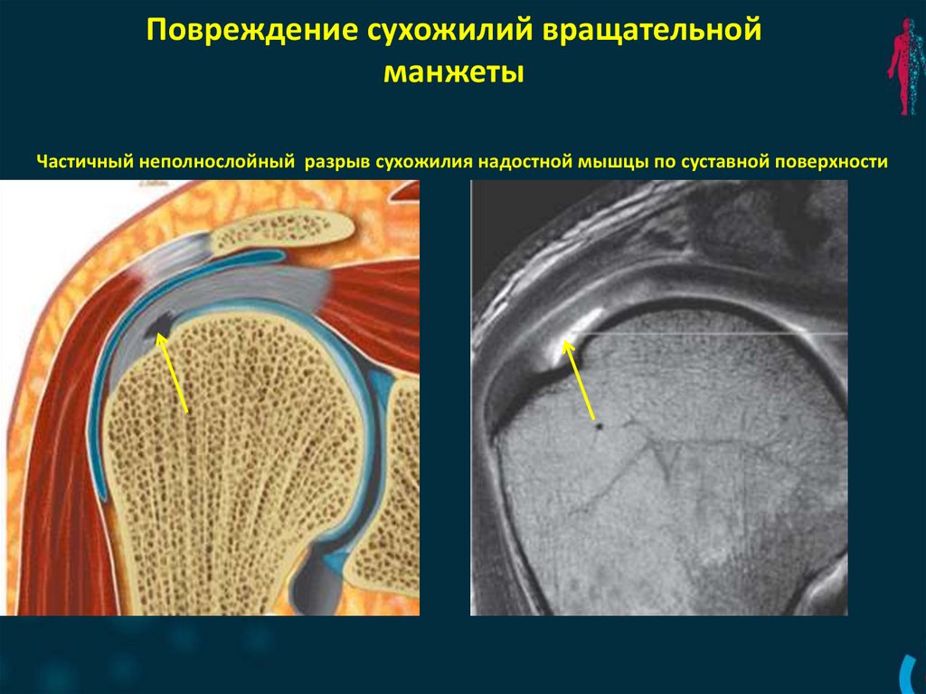 Частичный неполнослойный разрыв сухожилия надостной мышцы по суставной поверхности