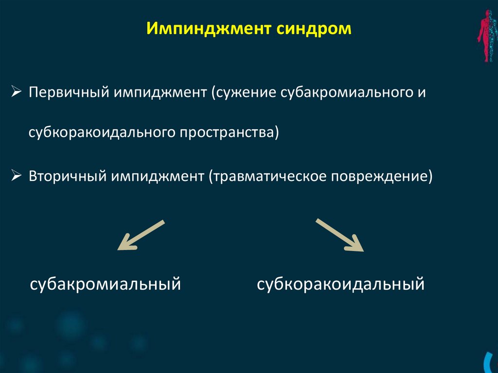 Импинджмент синдромПервичный импиджмент (сужение субакромиального и