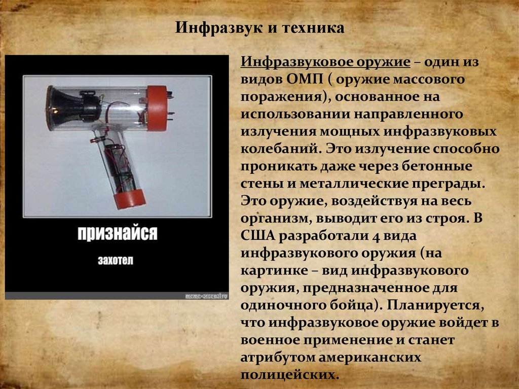 Инфразвук и техникаИнфразвуковое оружие – один из