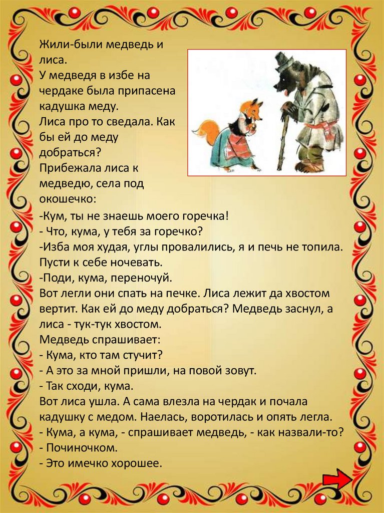 Русская народная сказка "Медведь и лиса". Занятие 18. Чтение с увлечением. 1 класс