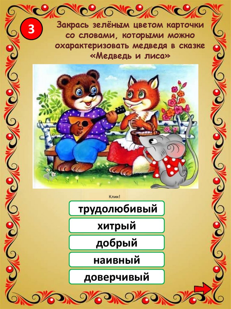 охарактеризовать медведя в сказке