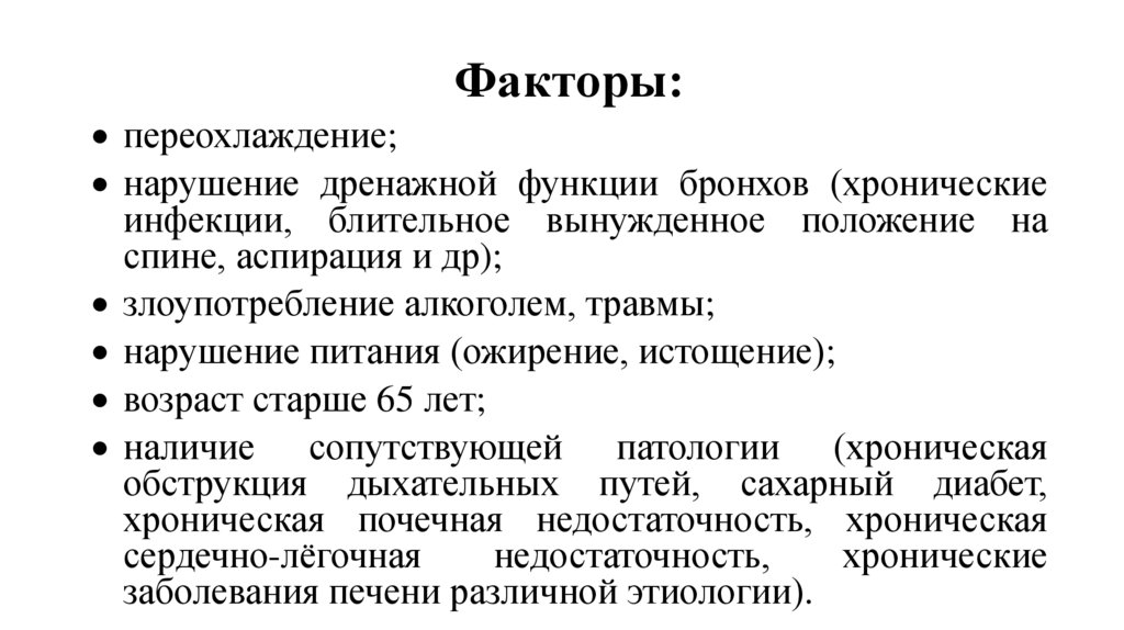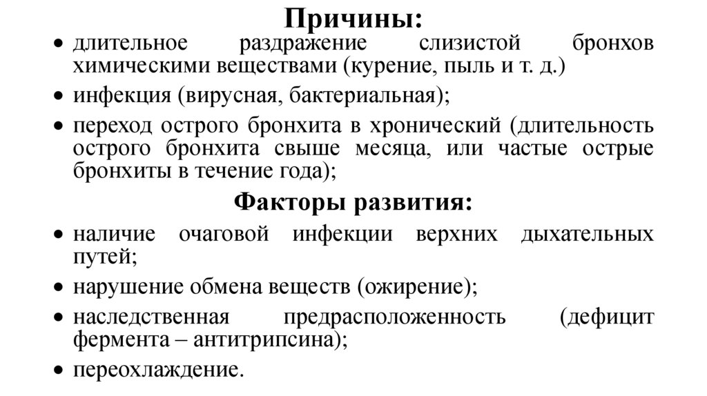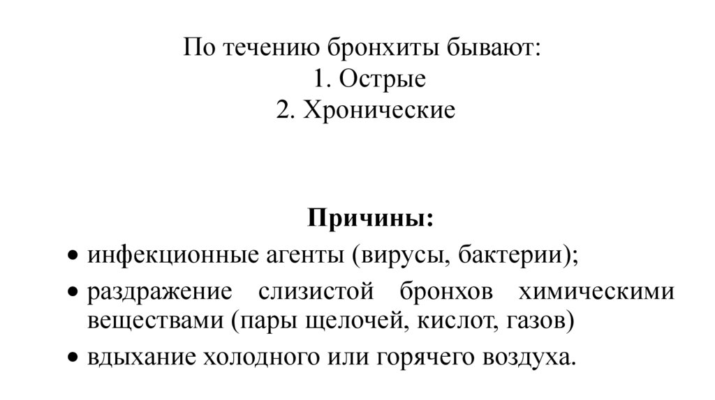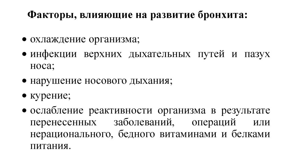Факторы, влияющие на развитие бронхита:охлаждение организма;