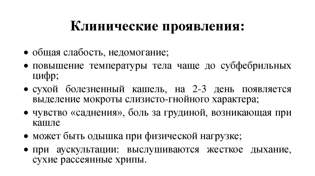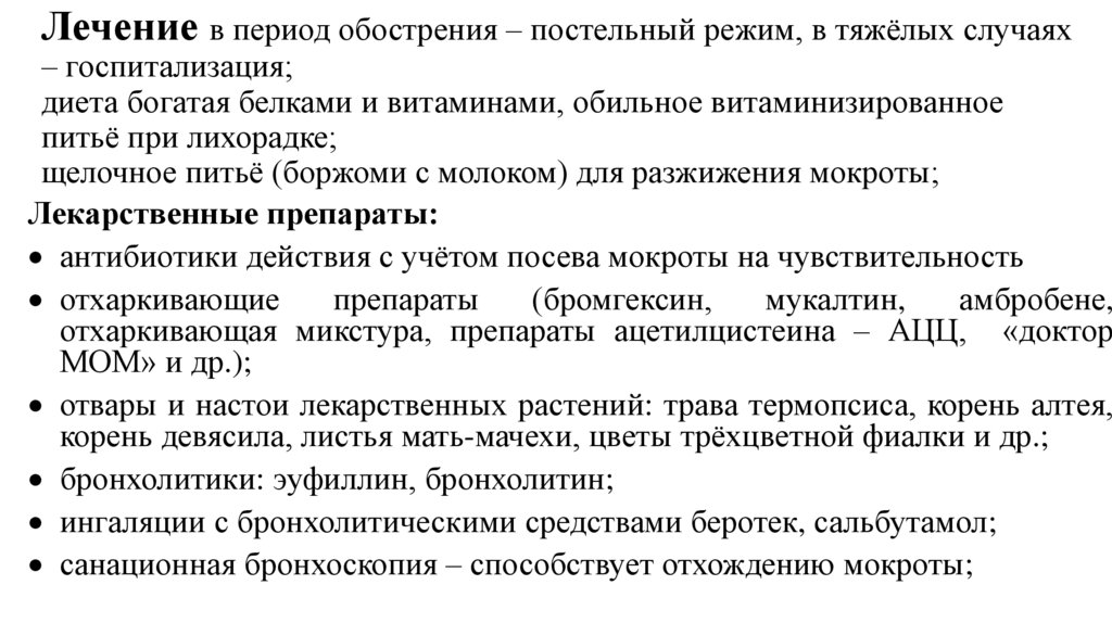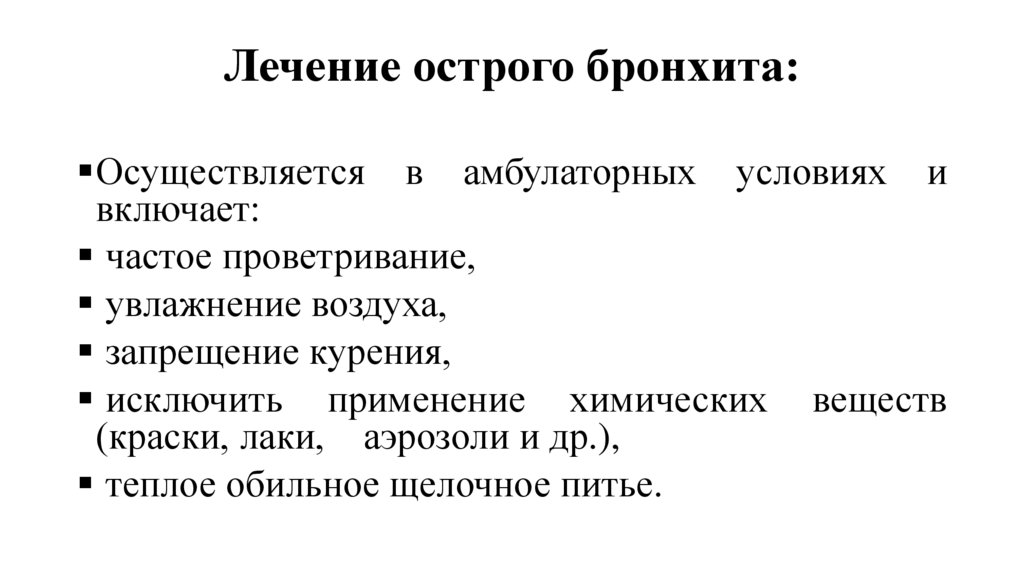 Лечение острого бронхита:Осуществляется в амбулаторных условиях и