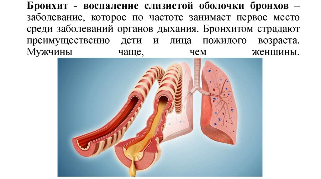 Бронхит - воспаление слизистой оболочки бронхов –заболевание, которое по частоте занимает первое место