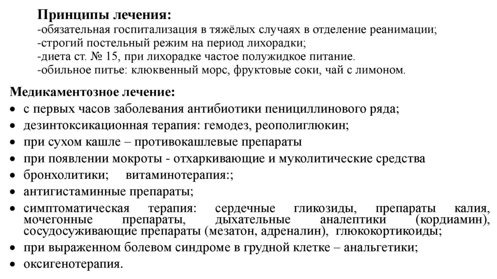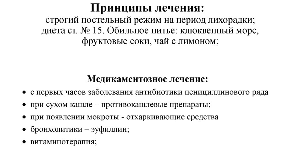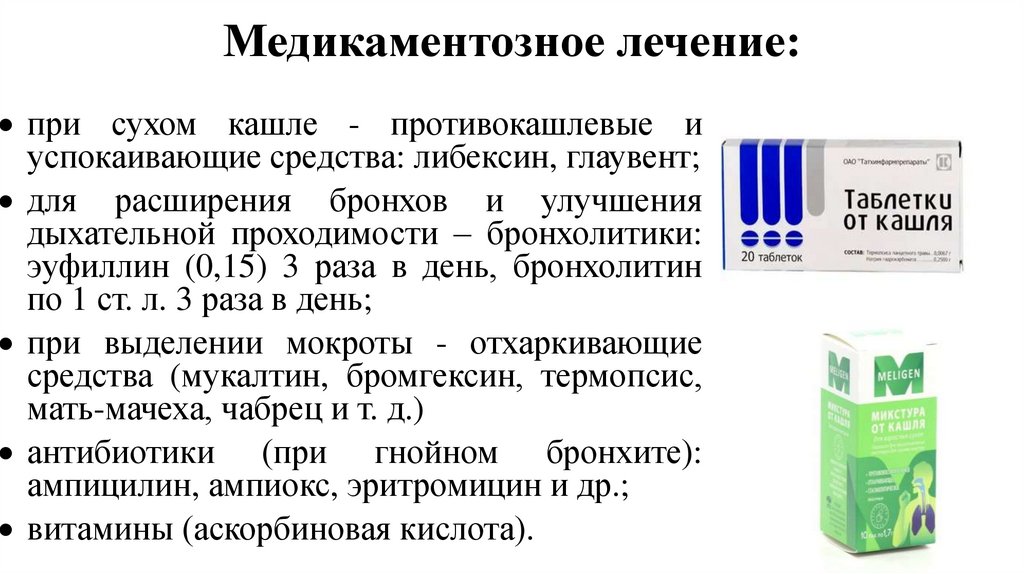 Медикаментозное лечение:при сухом кашле - противокашлевые и