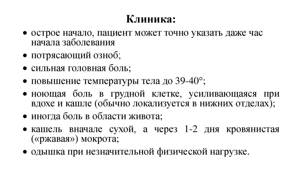 • При аускультации врач выслушивает шум трения плевры на вдохе
