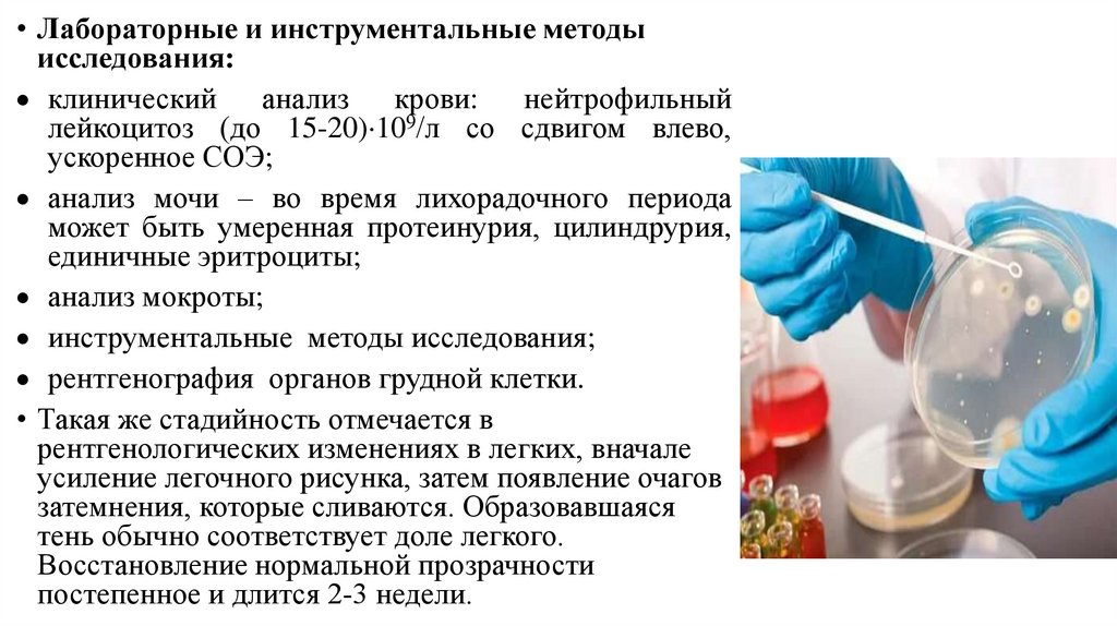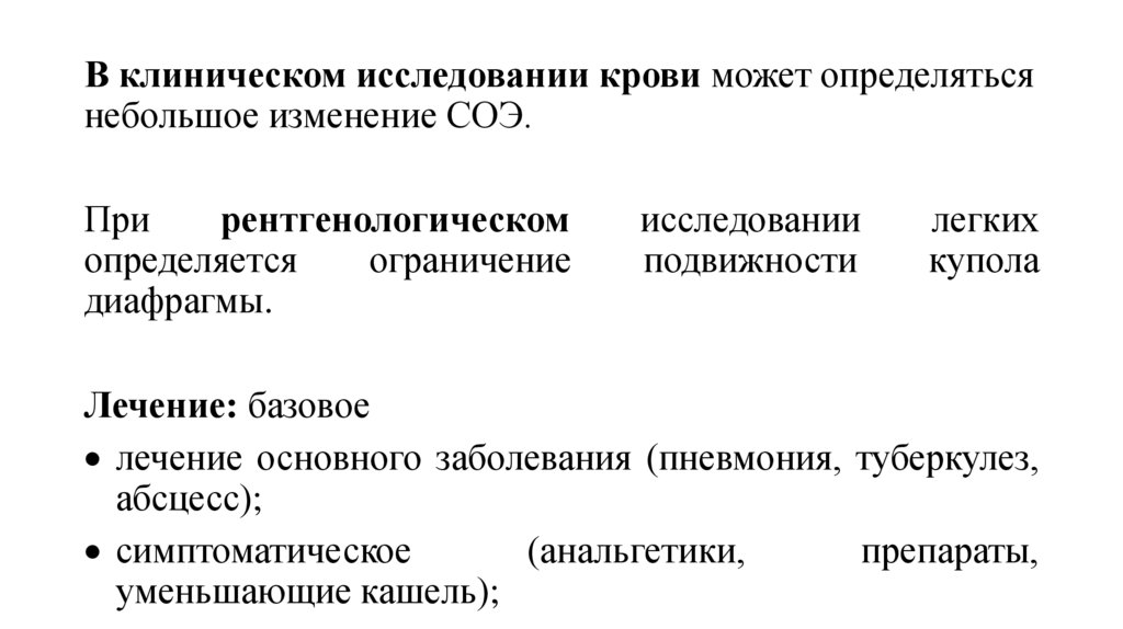 В клиническом исследовании крови может определятьсянебольшое изменение СОЭ.