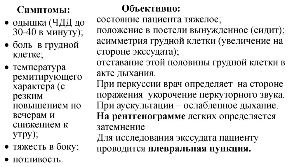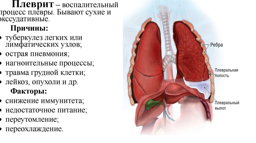 Экссудативный плевритПри экссудативном плеврите воспалительный процесс