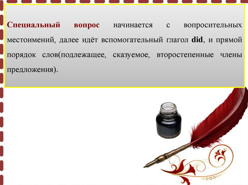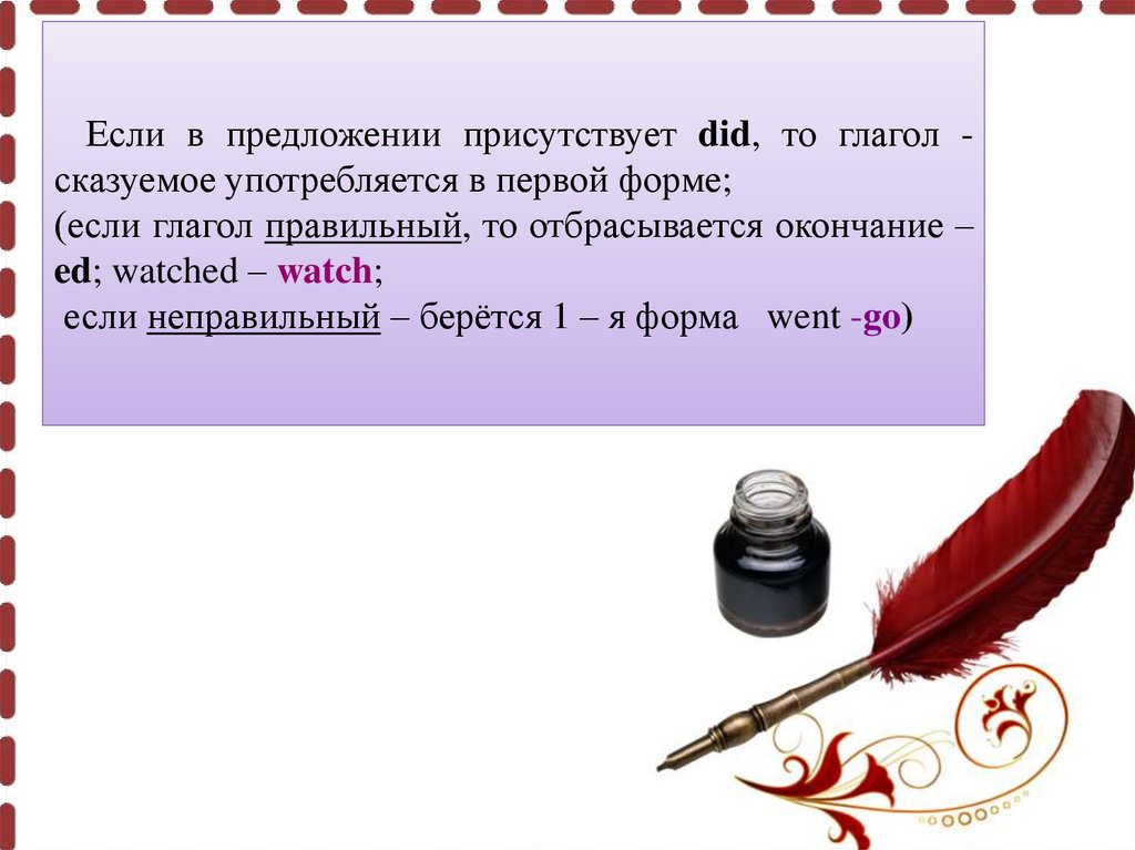 Если в предложении присутствует did, то глагол сказуемое употребляется в первой форме;(если глагол правильный, то отбрасывается окончание –