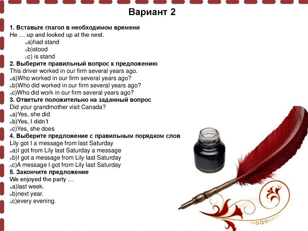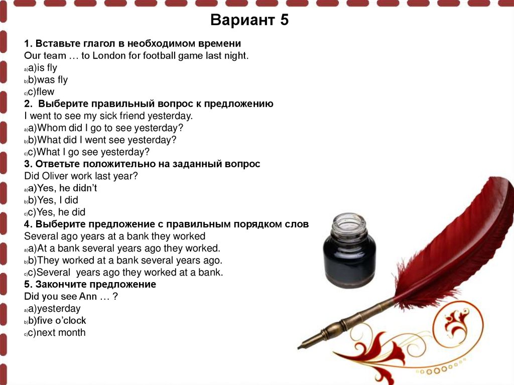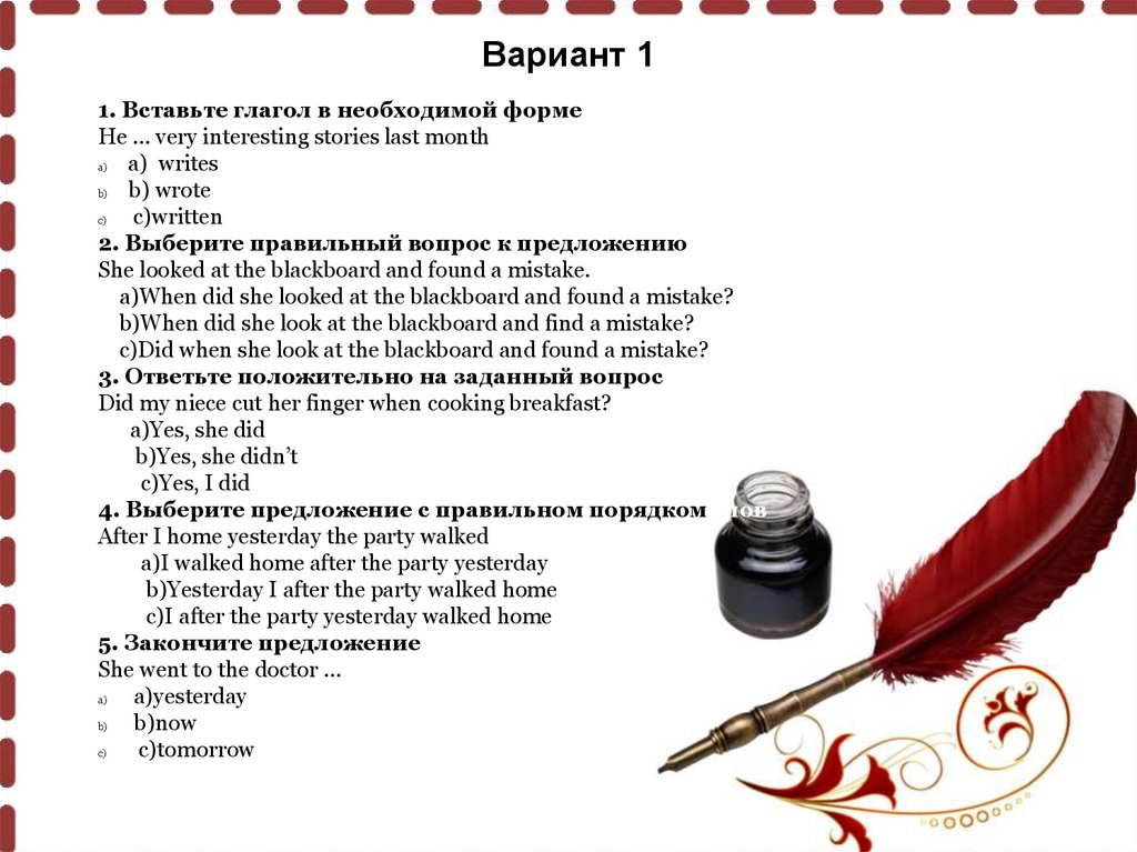 На данный вопрос требуется краткий ответ : Yes, I did / No, I