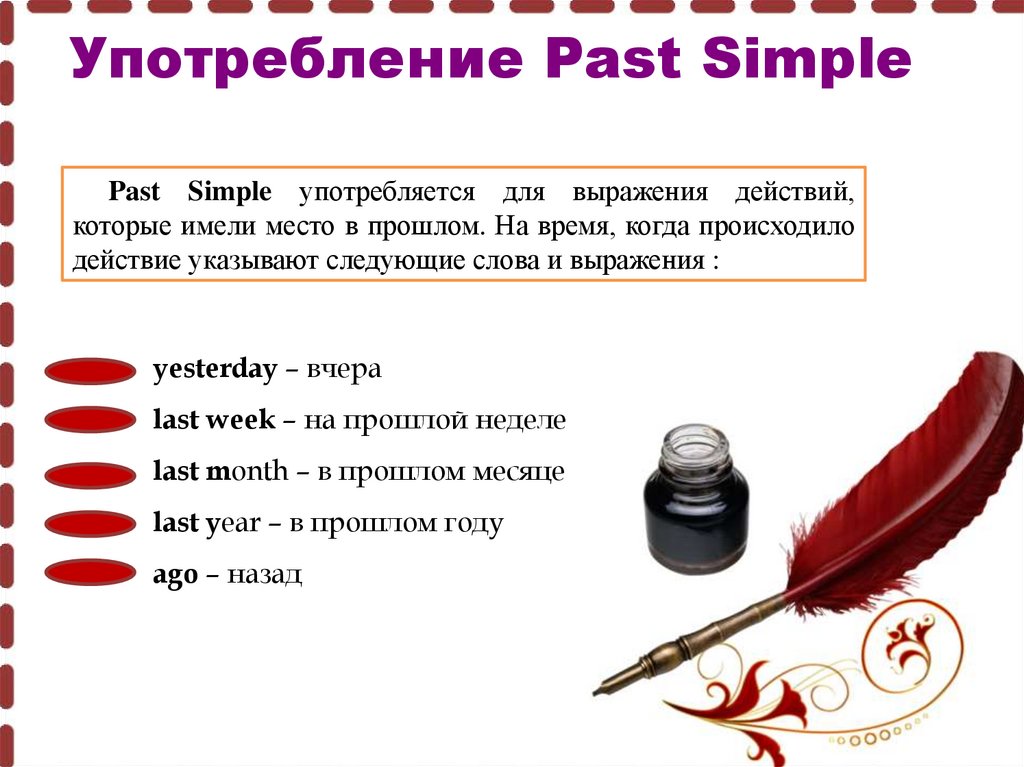 Употребление Past SimplePast Simple употребляется для выражения действий,