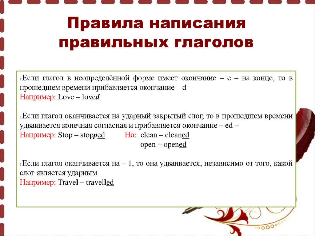 Если глагол оканчивается на – 1, то она удваивается, независимо от того, какой