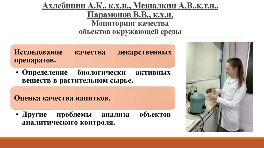 5. Ахлебинин А.К., к.х.н., Мешалкин А.В.,к.т.н., Парамонов В.В., к.х.н. Мониторинг качества объектов окружающей среды