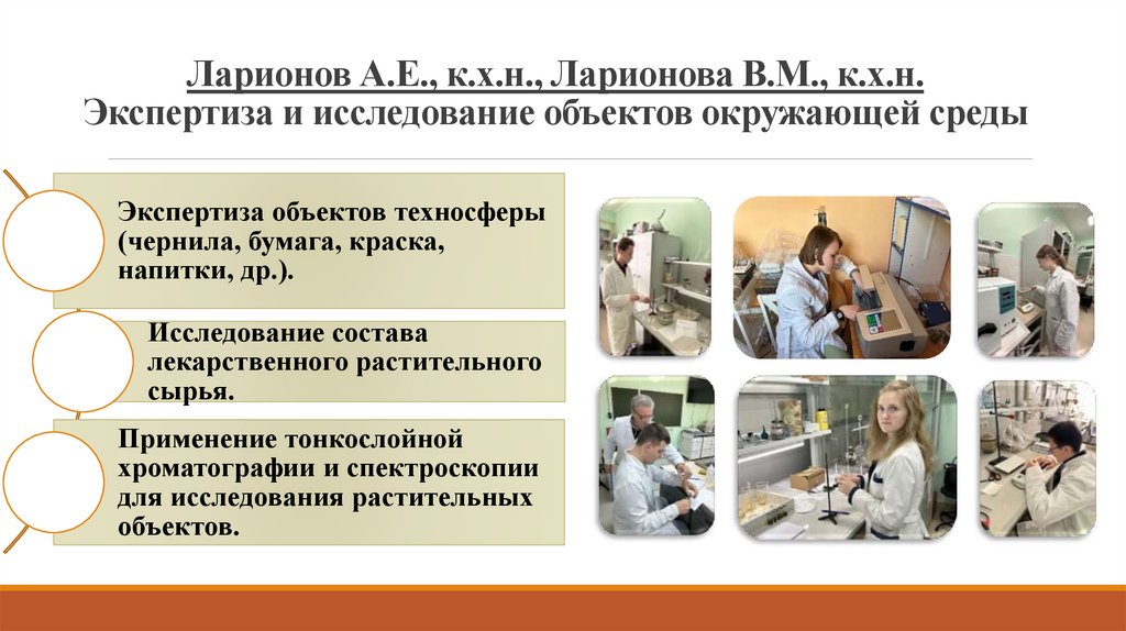 6. Ларионов А.Е., к.х.н., Ларионова В.М., к.х.н. Экспертиза и исследование объектов окружающей среды