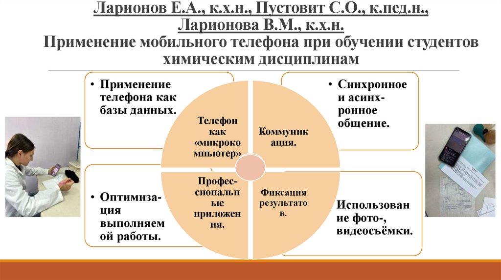 8. Ларионов Е.А., к.х.н., Пустовит С.О., к.пед.н., Ларионова В.М., к.х.н. Применение мобильного телефона при обучении студентов