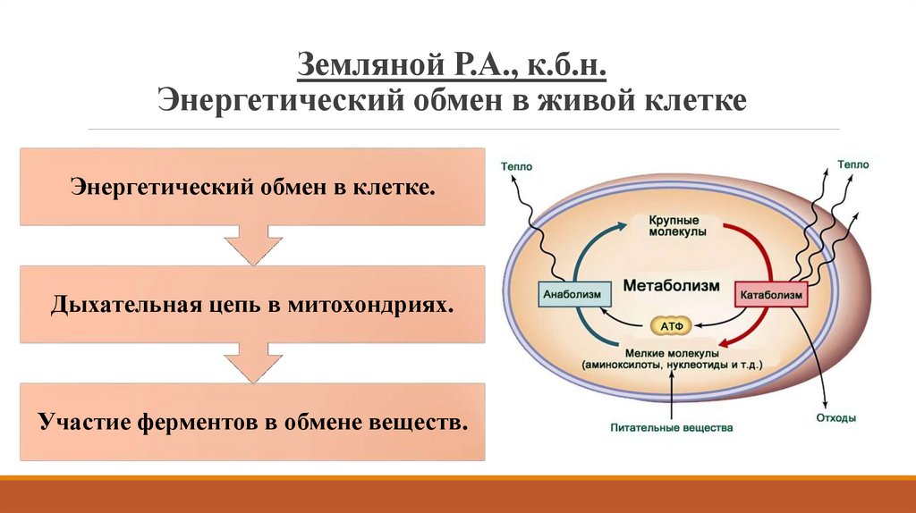 9. Земляной Р.А., к.б.н. Энергетический обмен в живой клетке