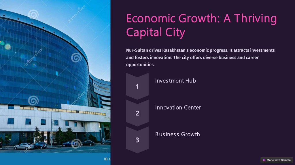 Nur-Sultan drives Kazakhstan's economic progress. It attracts investments