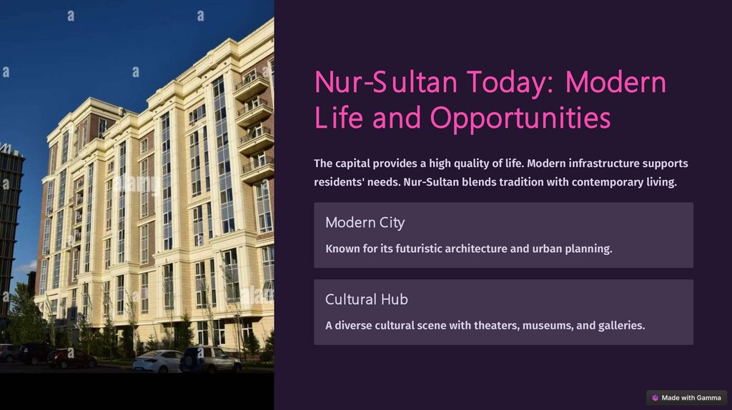 residents' needs. Nur-Sultan blends tradition with contemporary living.