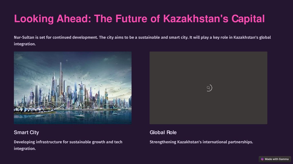 Looking Ahead: The Future of Kazakhstan's CapitalNur-Sultan is set for continued development. The city aims to be a sustainable and smart city. It will play a key role in Kazakhstan's global