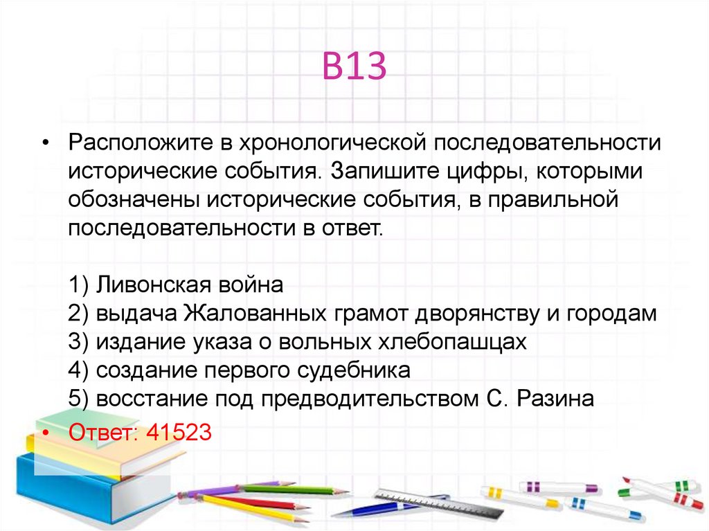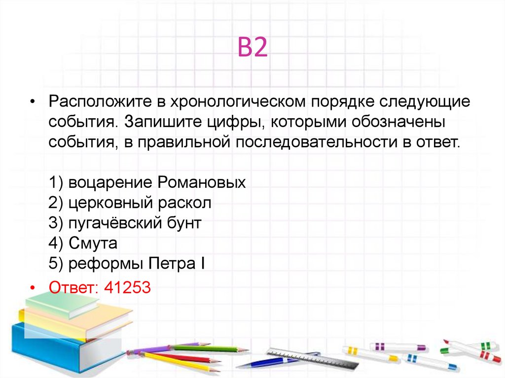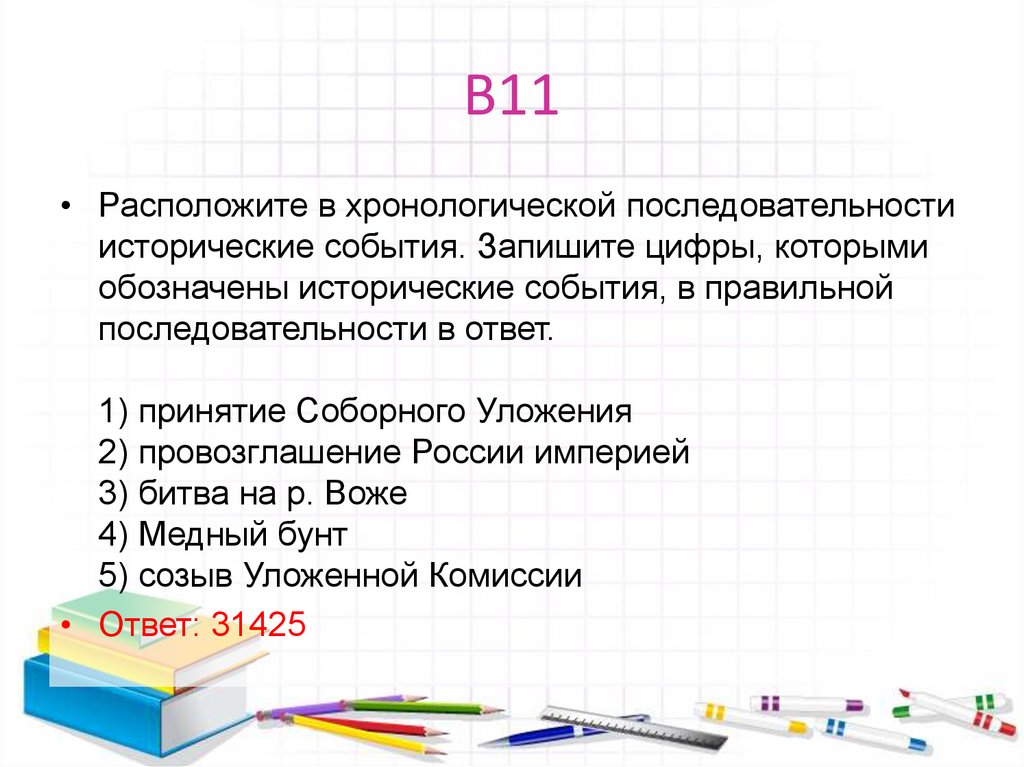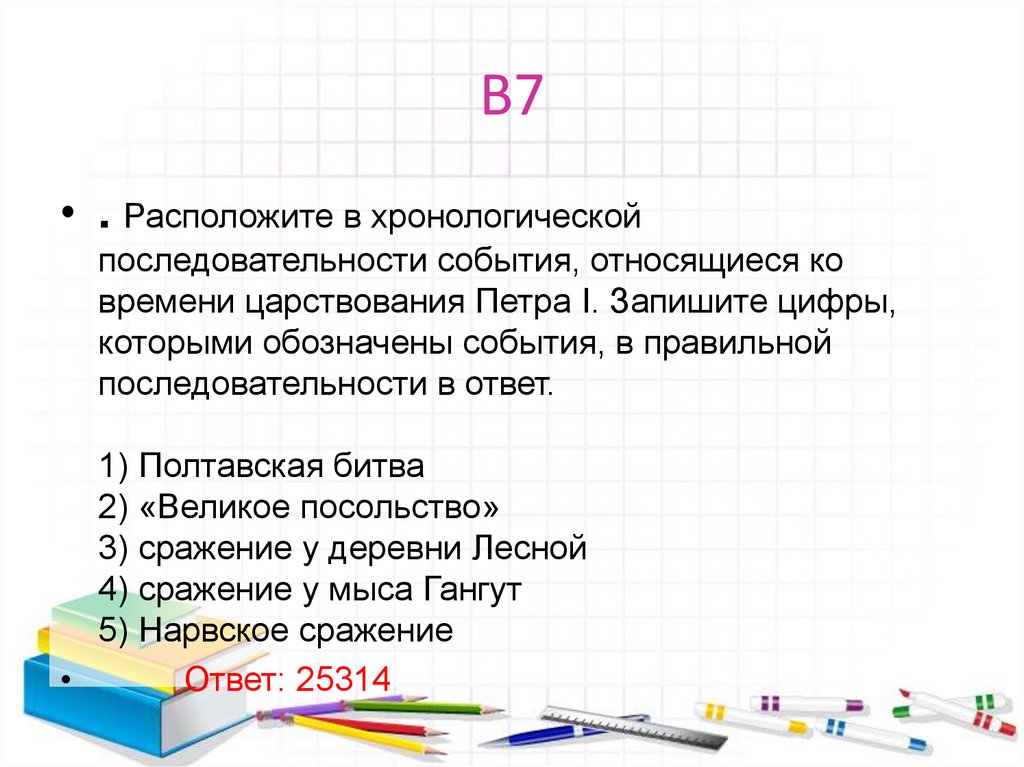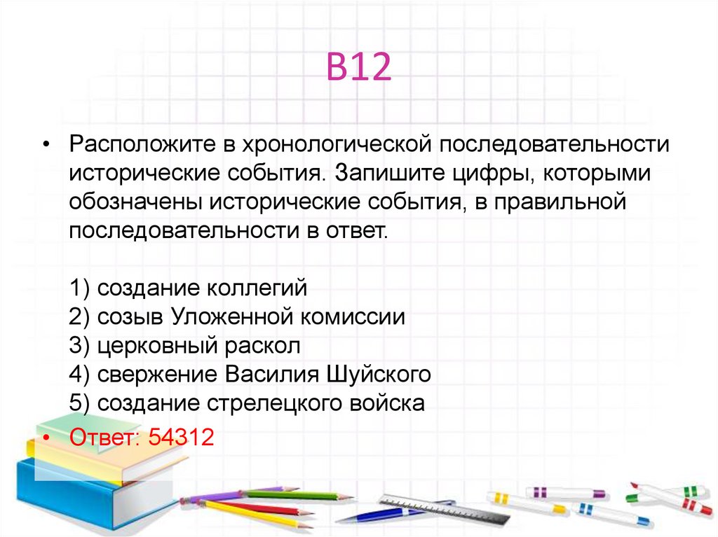 • Расположите в хронологической последовательностиисторические события. Запишите цифры, которыми
