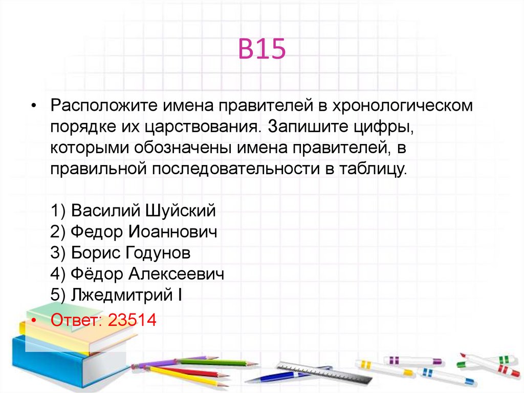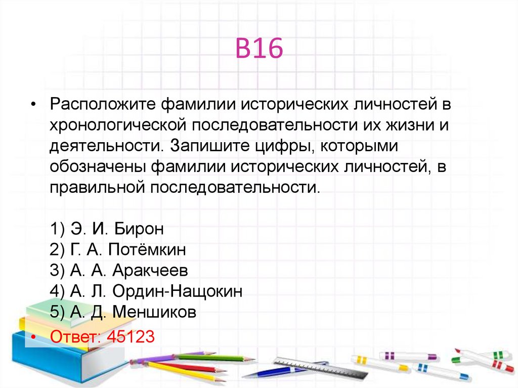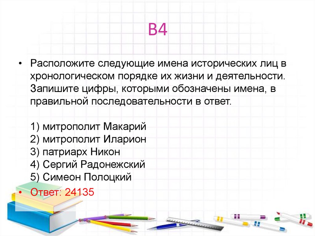 • Расположите следующие имена исторических лиц вхронологическом порядке их жизни и деятельности.