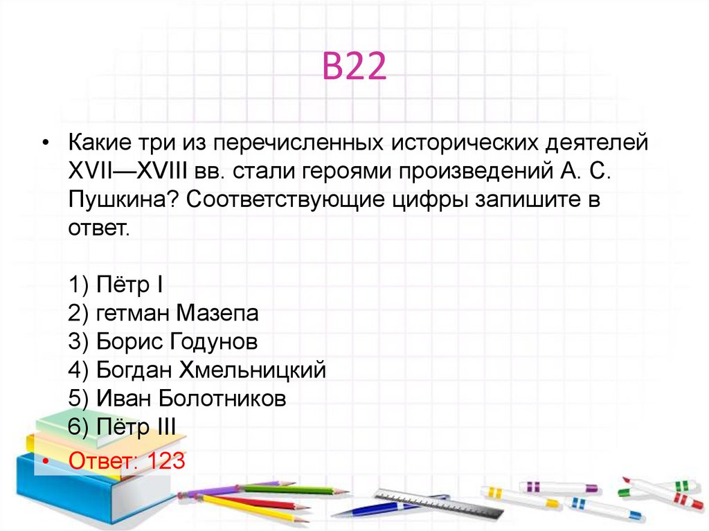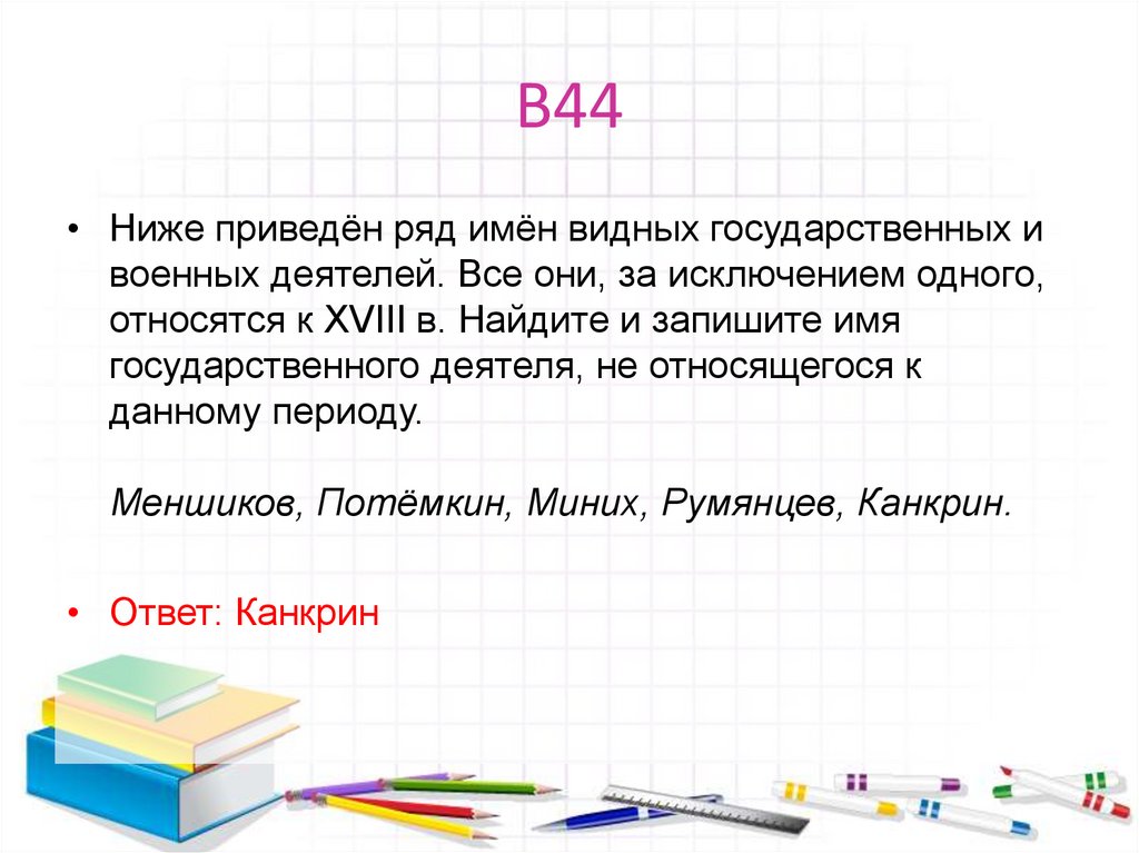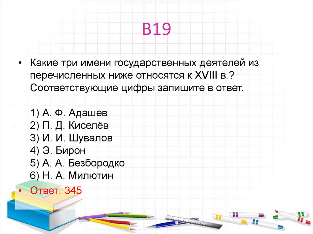 • Ниже приведён ряд имён видных государственных ивоенных деятелей. Все они, за исключением одного,