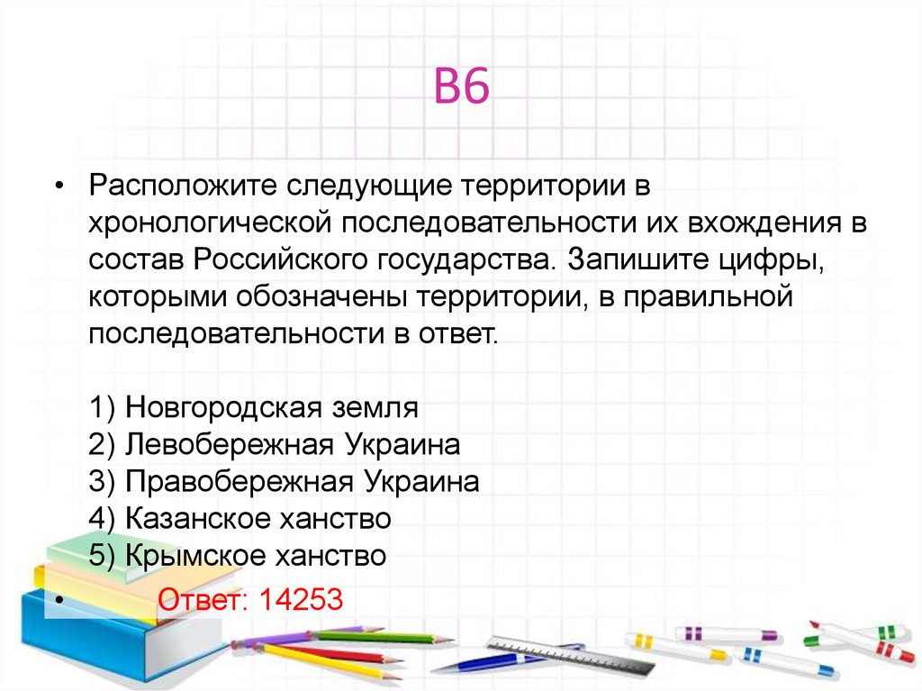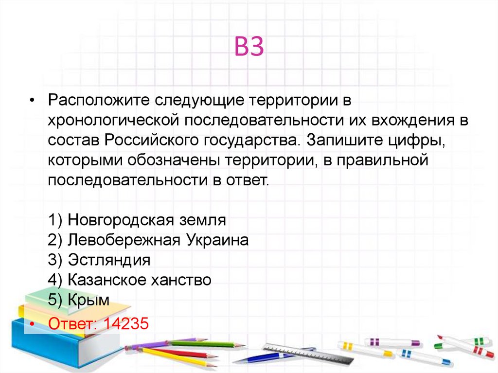 • Расположите следующие территории вхронологической последовательности их вхождения в