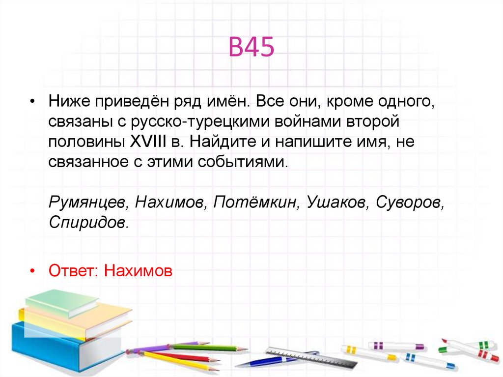 • Ниже приведён ряд имён. Все они, кроме одного,связаны с русско-турецкими войнами второй
