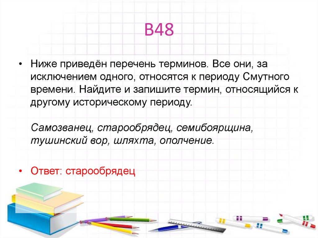 • Ниже приведён перечень терминов. Все они, заисключением одного, относятся к периоду Смутного