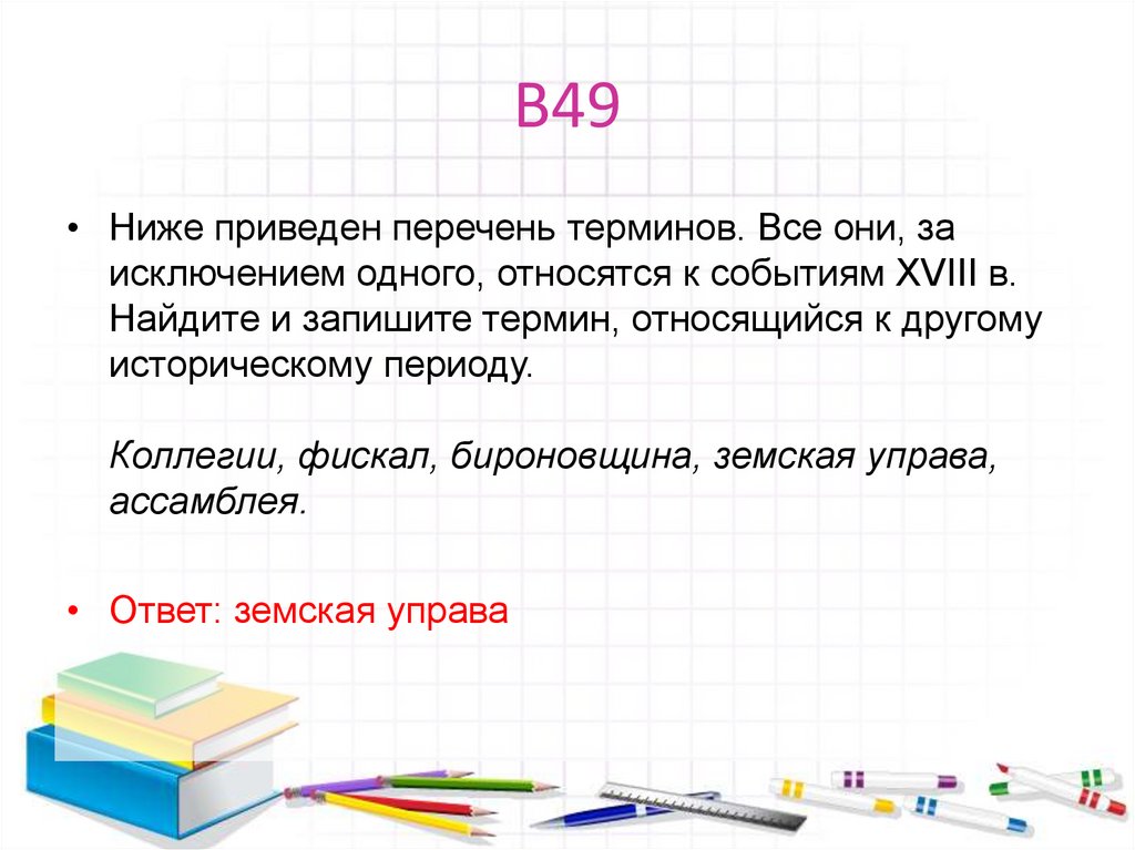 • Ниже приведён перечень терминов. Все они, заисключением одного, относятся к событиям XVIII в.