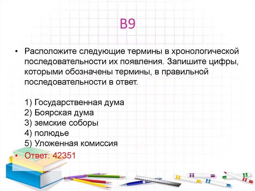 • Расположите следующие термины в хронологическойпоследовательности их появления. Запишите цифры,