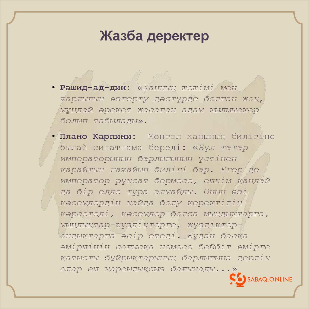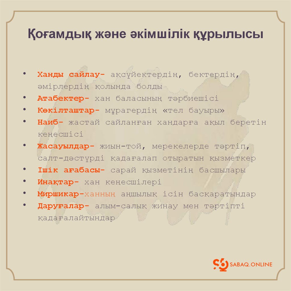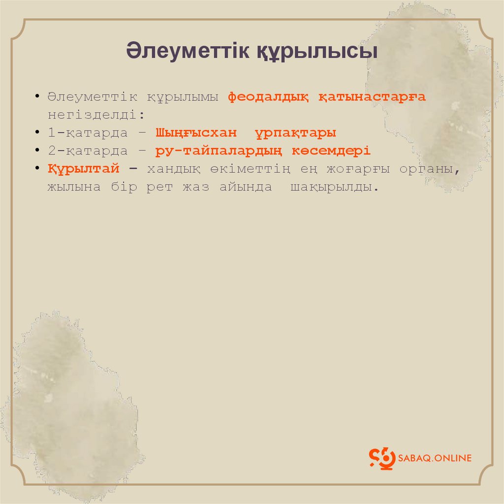 • Құрылтай – хандық өкіметтің ең жоғарғы органы,