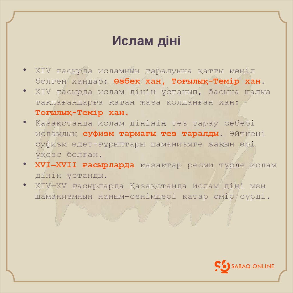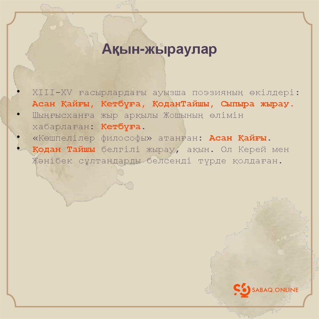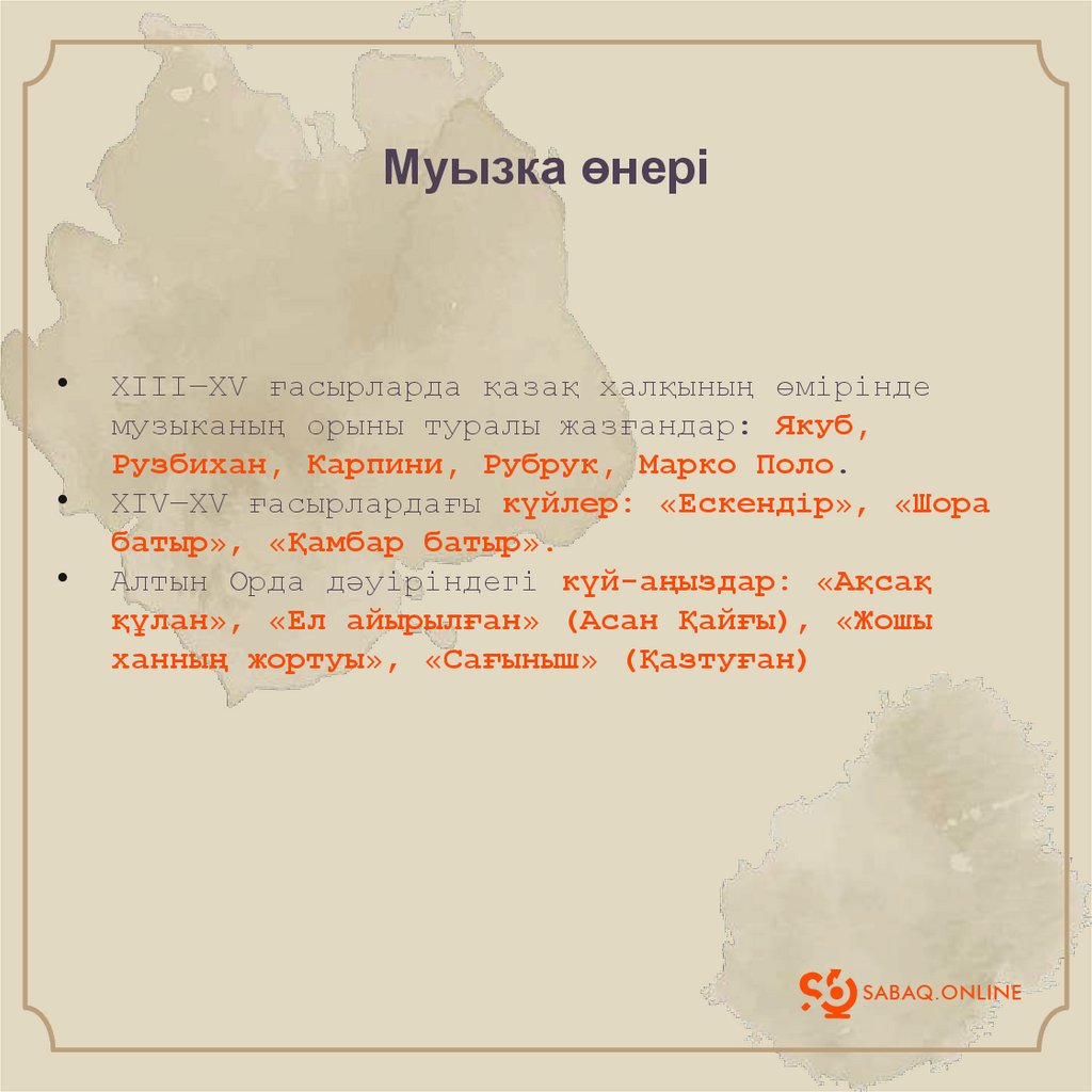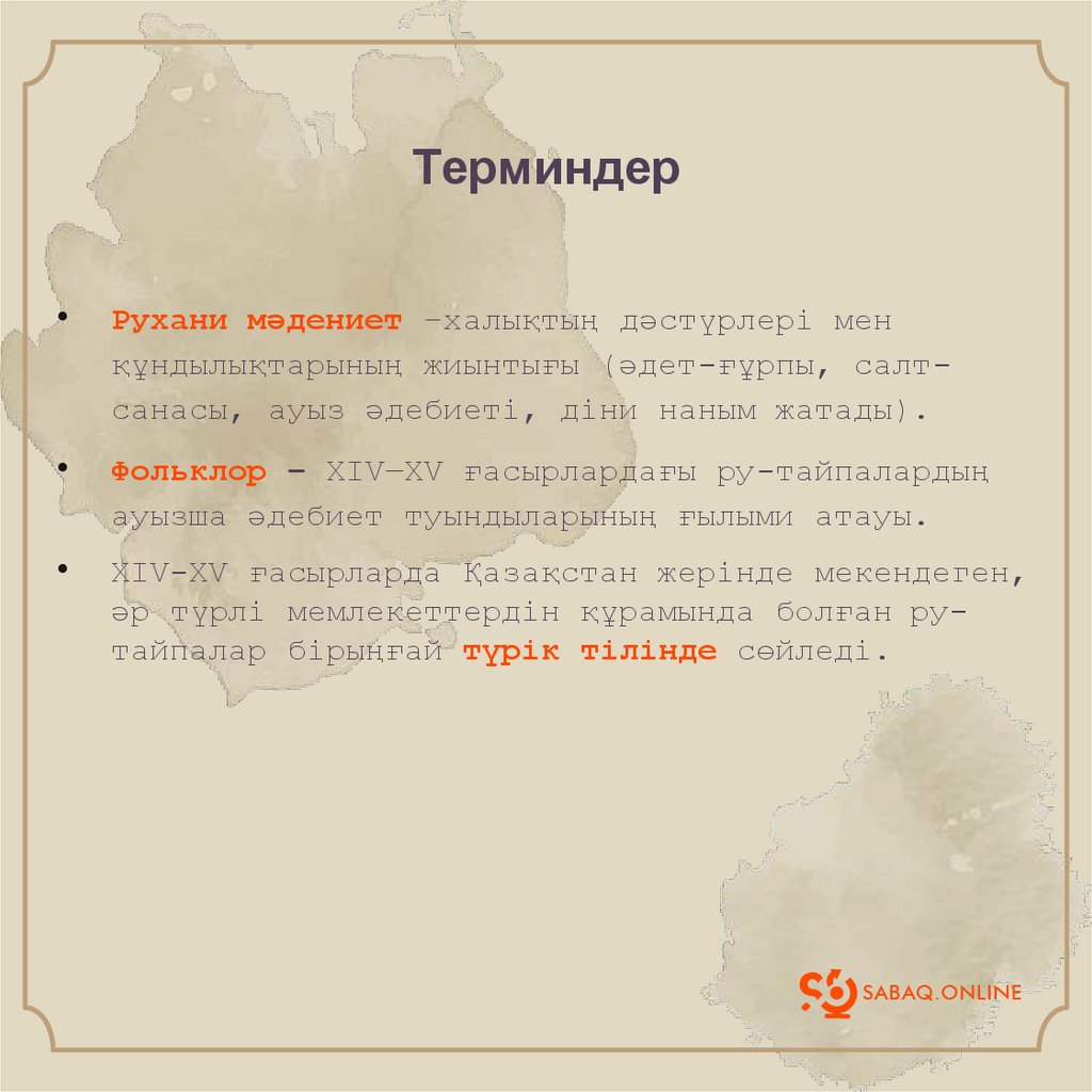Қазақстан тарихыXIV-XV ғасырлардағы мәдениет