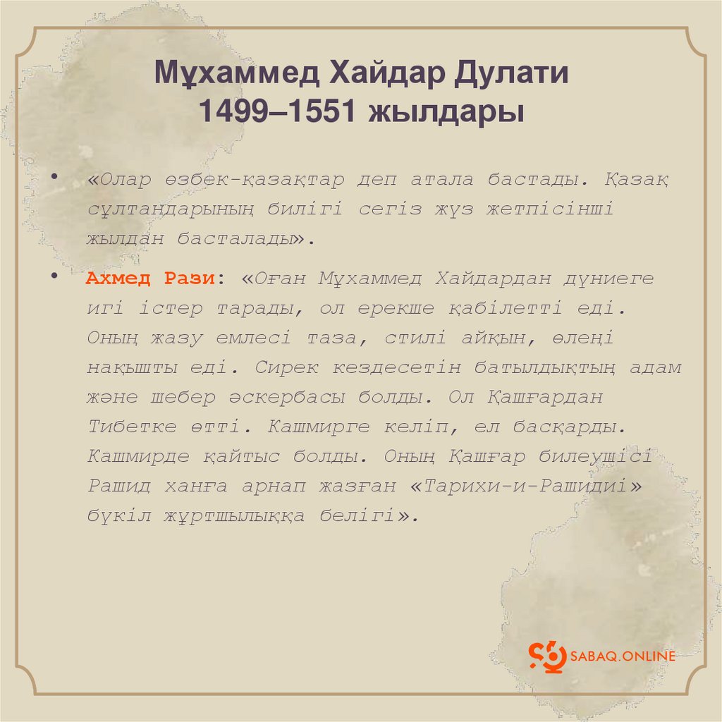 Мұхаммед Хайдар Дулати1499–1551 жылдары