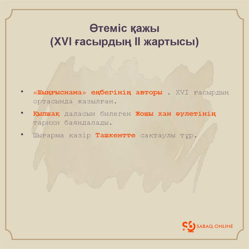 «Шыңғыснама» еңбегінің авторы . ХVІ ғасырдың