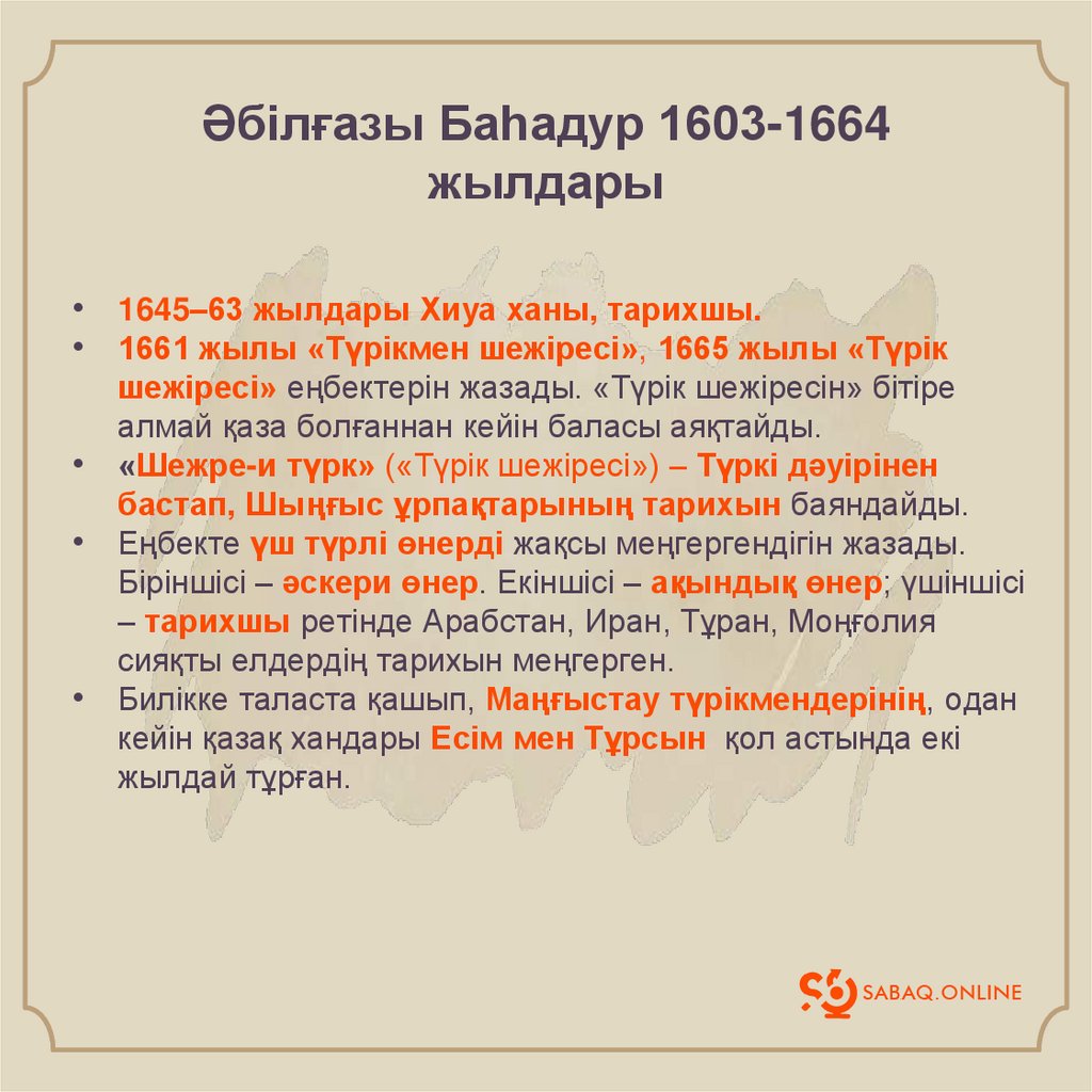 • 1661 жылы «Түрікмен шежіресі», 1665 жылы «Түрік