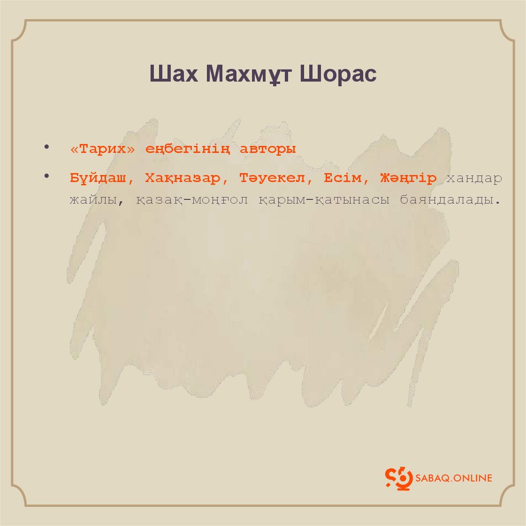 жазылған. Онда орта ғасырлардағы қазақтар тарихы,