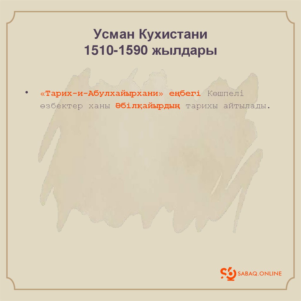 өзбектер ханы Әбілқайырдың тарихы айтылады.