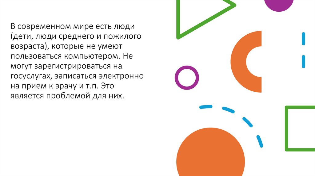 В современном мире есть люди(дети, люди среднего и пожилого