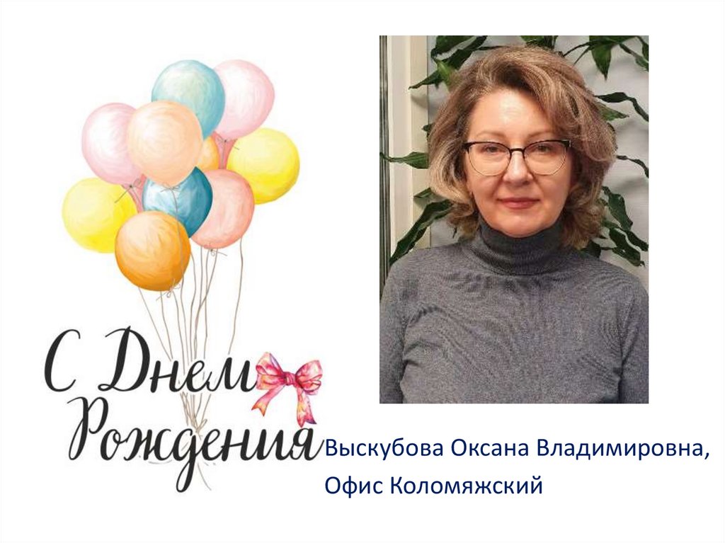 Выскубова Оксана Владимировна,Офис Коломяжский