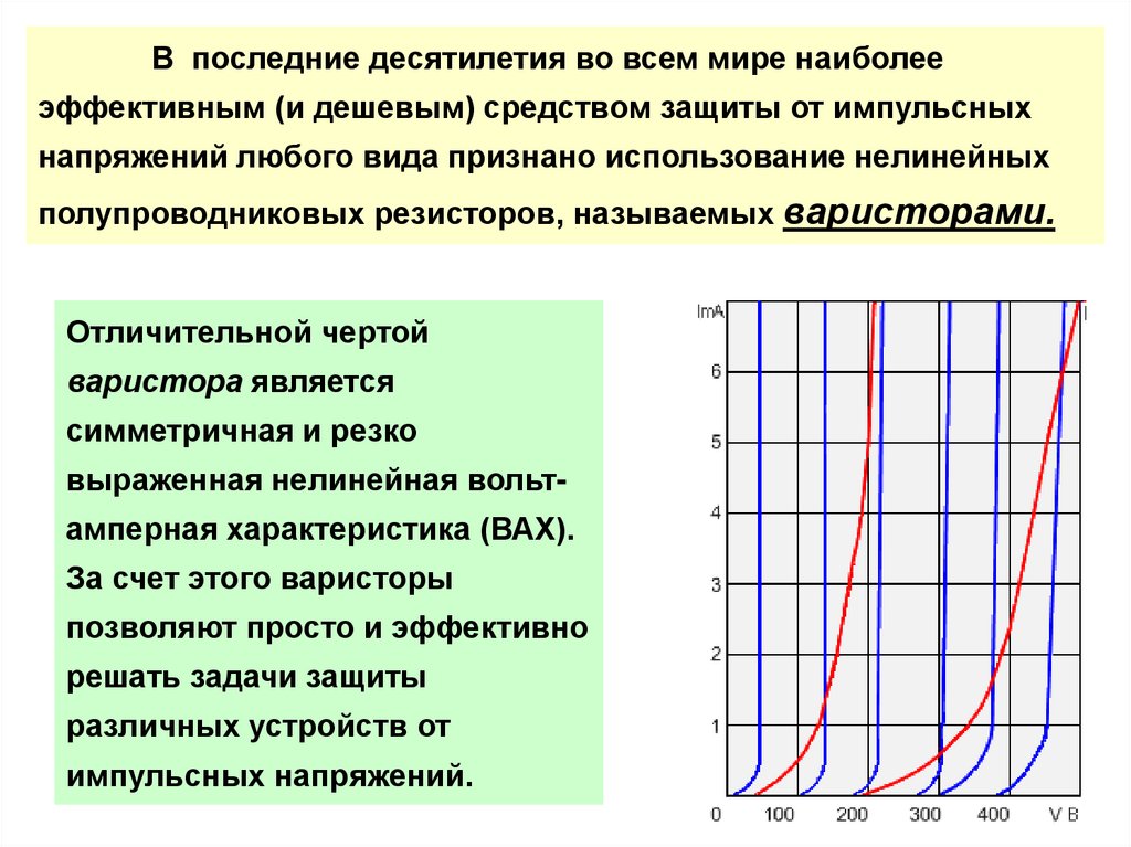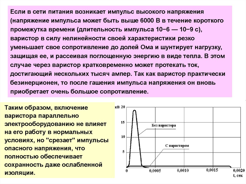 достигающий нескольких тысяч ампер. Так как варистор практически