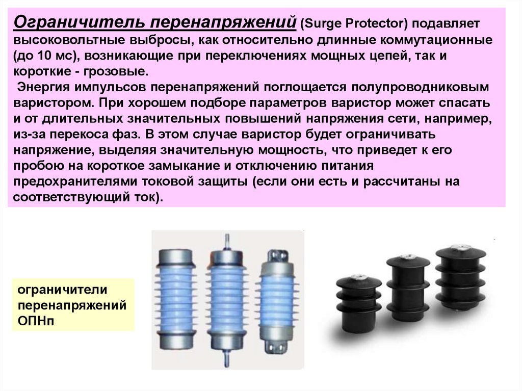 Ограничитель перенапряжений (Surge Protector) подавляетвысоковольтные выбросы, как относительно длинные коммутационные