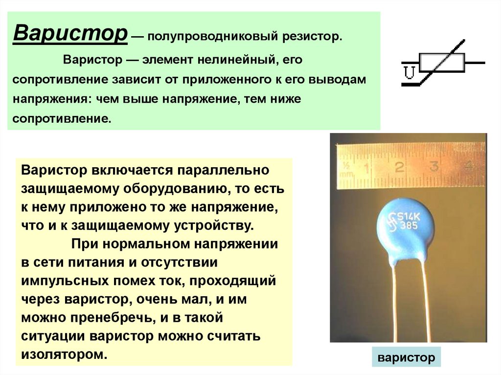 Варистор — полупроводниковый резистор.Варистор — элемент нелинейный, его