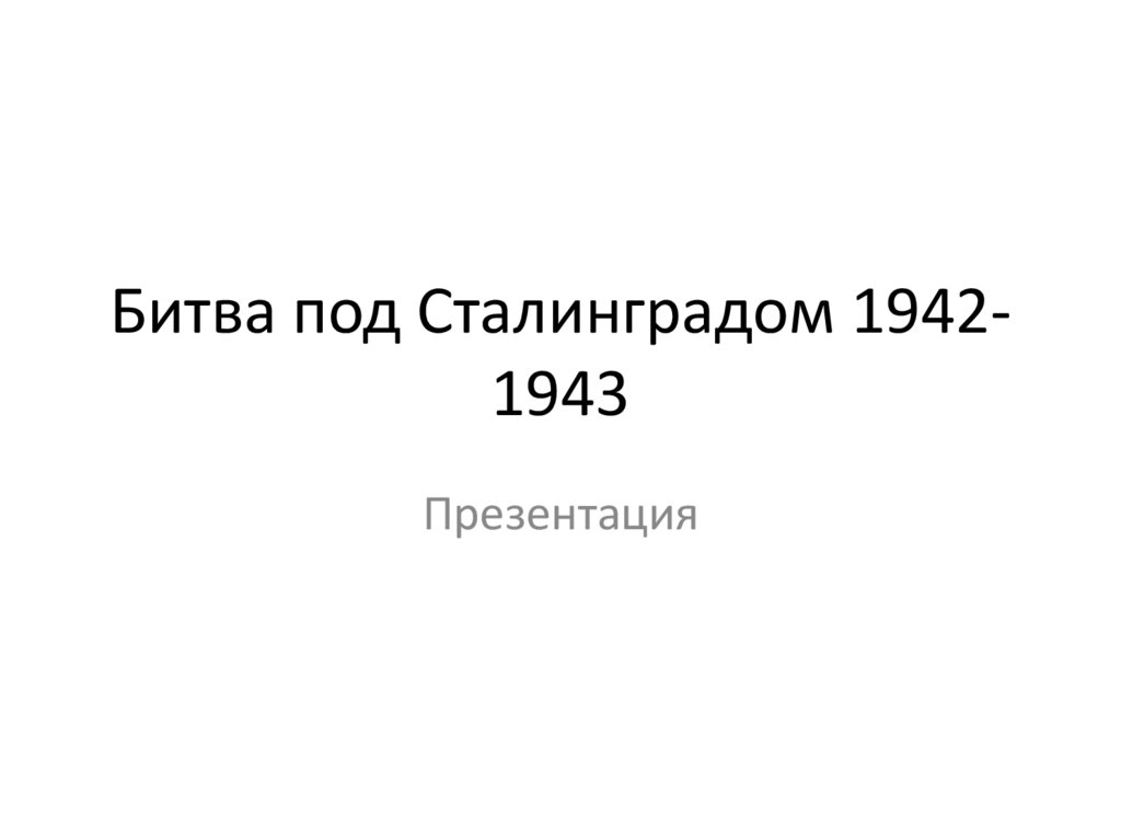 Битва под Сталинградом 19421943Презентация