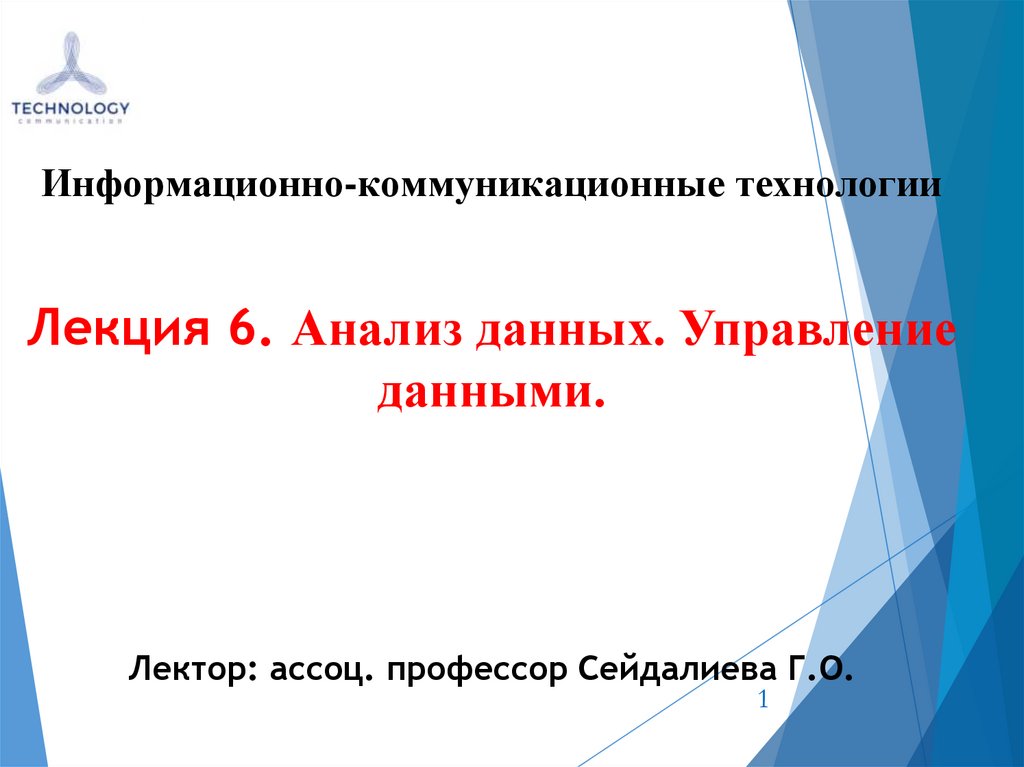 Информационно-коммуникационные технологииЛекция 6. Анализ данных. Управление