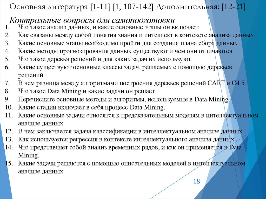 Основная литература [1-11] [1, 107-142] Дополнительная: [12-21]Контрольные вопросы для самоподготовки