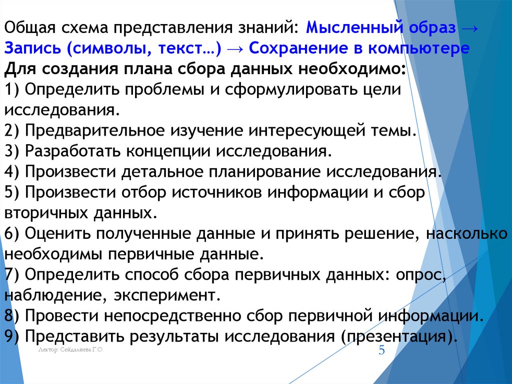 Общая схема представления знаний: Мысленный образ →Запись (символы, текст…) → Сохранение в компьютере