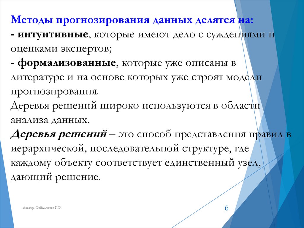 Методы прогнозирования данных делятся на:- интуитивные, которые имеют дело с суждениями и