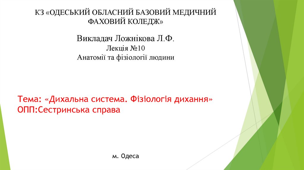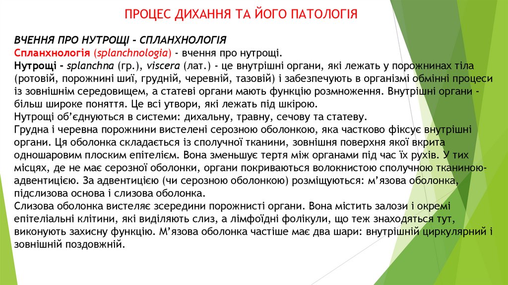 ПРОЦЕС ДИХАННЯ ТА ЙОГО ПАТОЛОГІЯВЧЕННЯ ПРО НУТРОЩІ - СПЛАНХНОЛОГІЯ