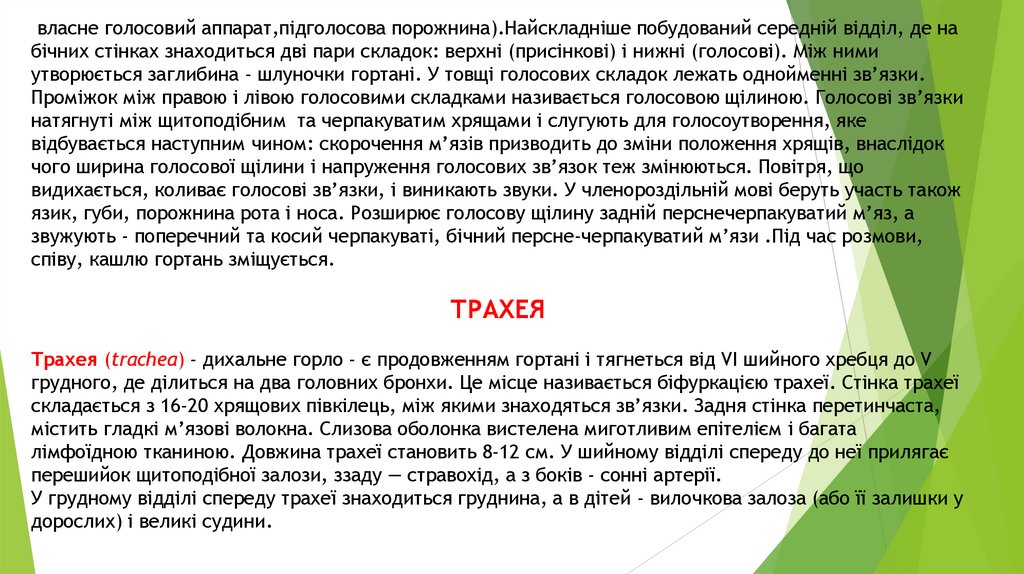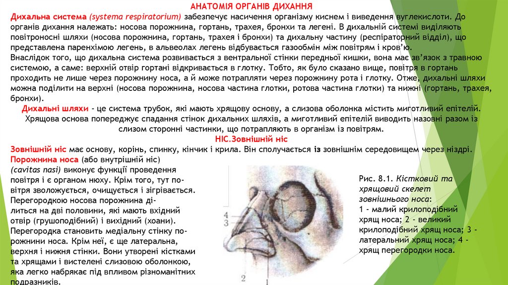 АНАТОМІЯ ОРГАНІВ ДИХАННЯДихальна система (systema respiratorium) забезпечує насичення організму киснем і виведення вуглекислоти. До